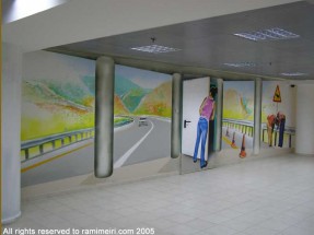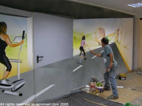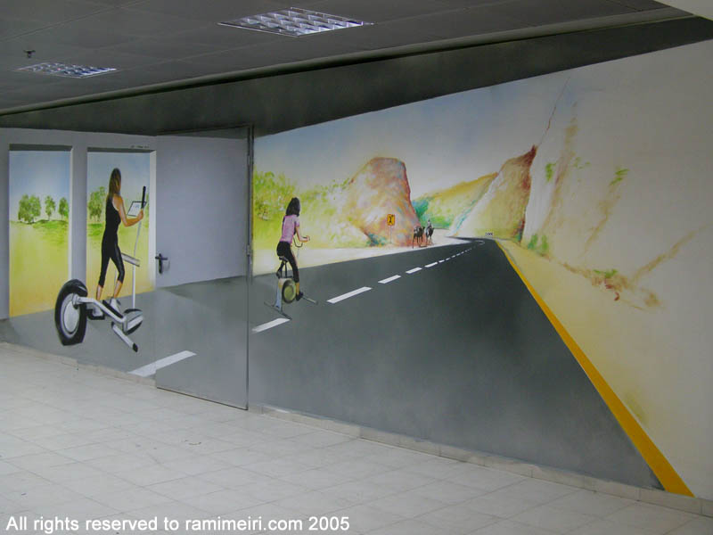 שתי קומות מצויירות: האחת קומת משרדים והשנייה חדר כושר