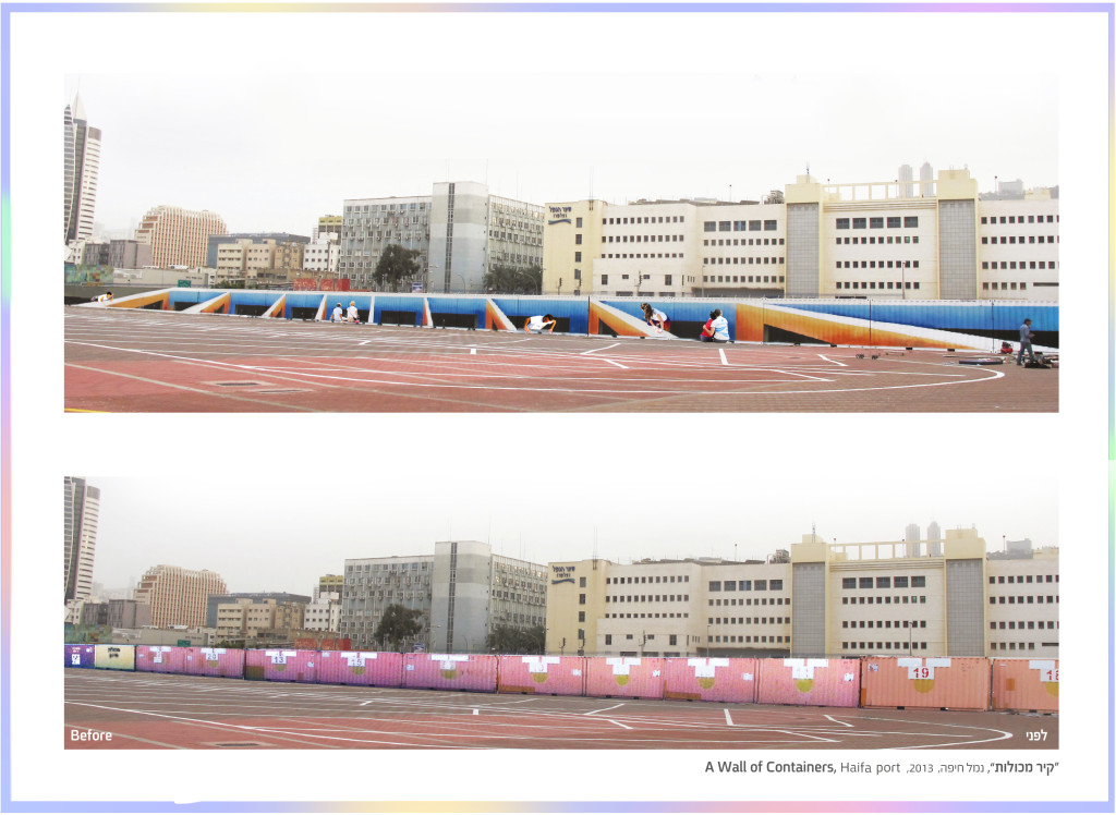 ציור על עשרים וחמש מכולות מיגון בנמל חיפה